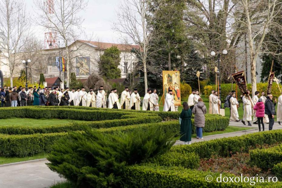 De la Mănăstirea Bărboi, începând cu ora 16:45, s-a pornit în procesiune către Catedrala Mitropolitană, cu două opriri: la Biserica „Sfântul Sava” și la Mănăstirea „Sfinții Trei Ierarhi”.